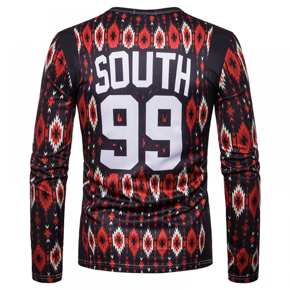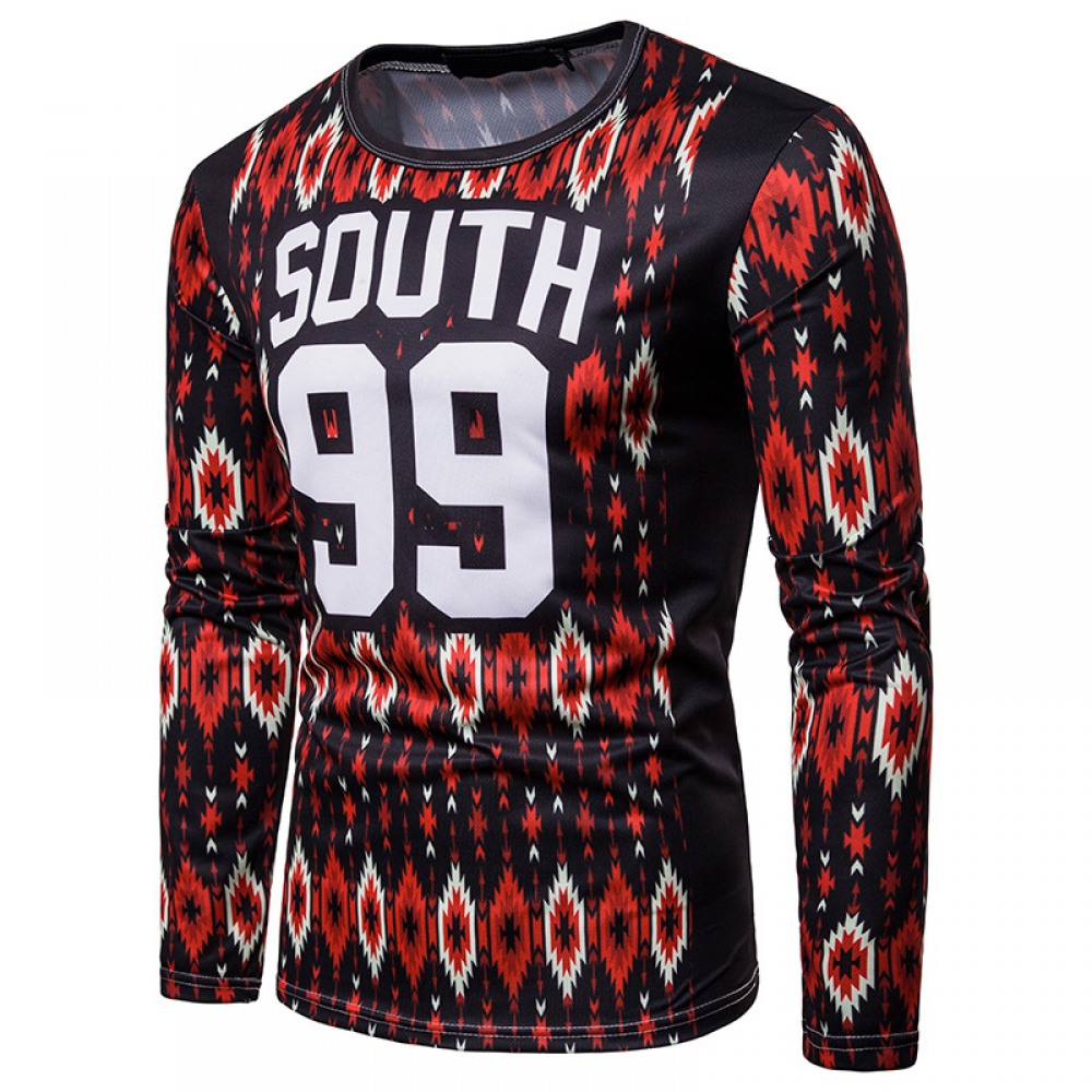 Men's Letter Printing Long-Sleeved Round Neck T-Shirt