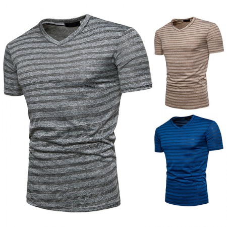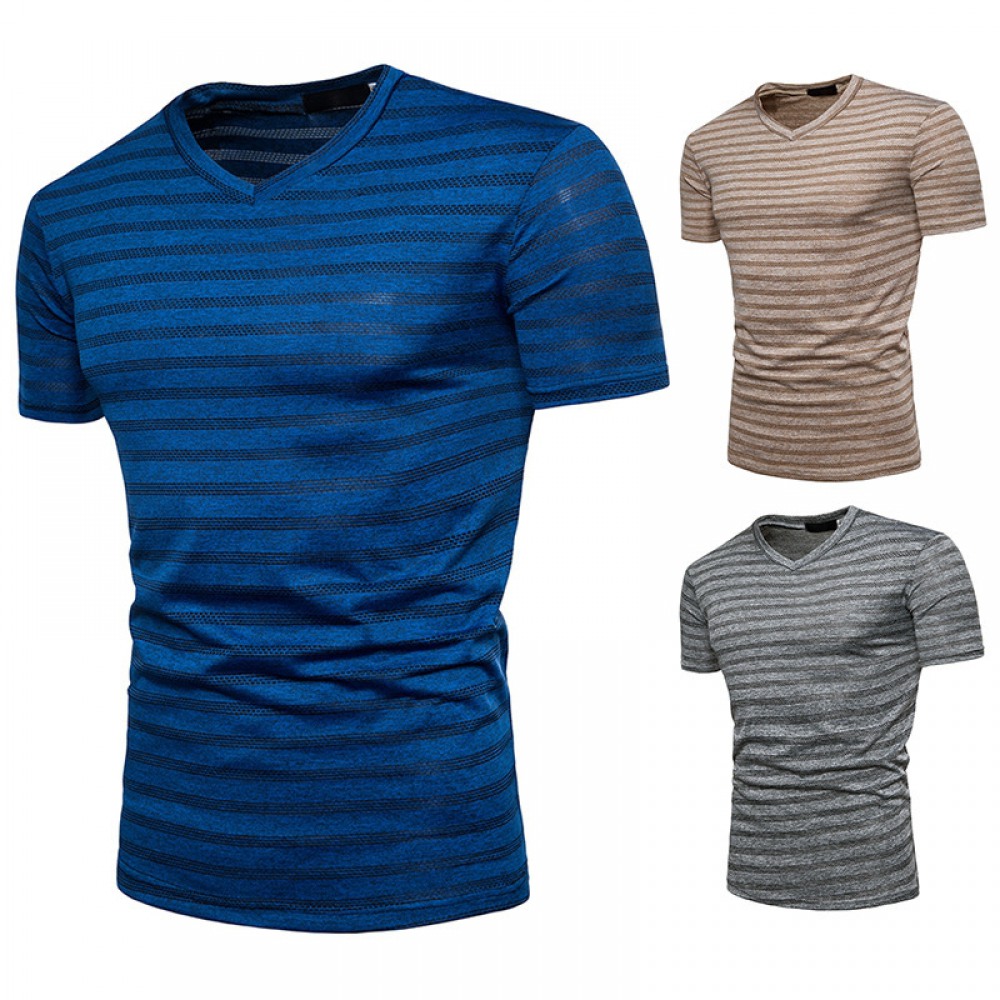 New Summer Men's Short-Sleeved T-Shirt Mens Contrast Striped Slim Casual T-Shirt