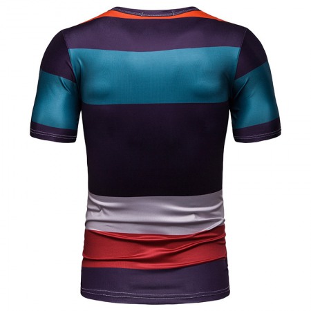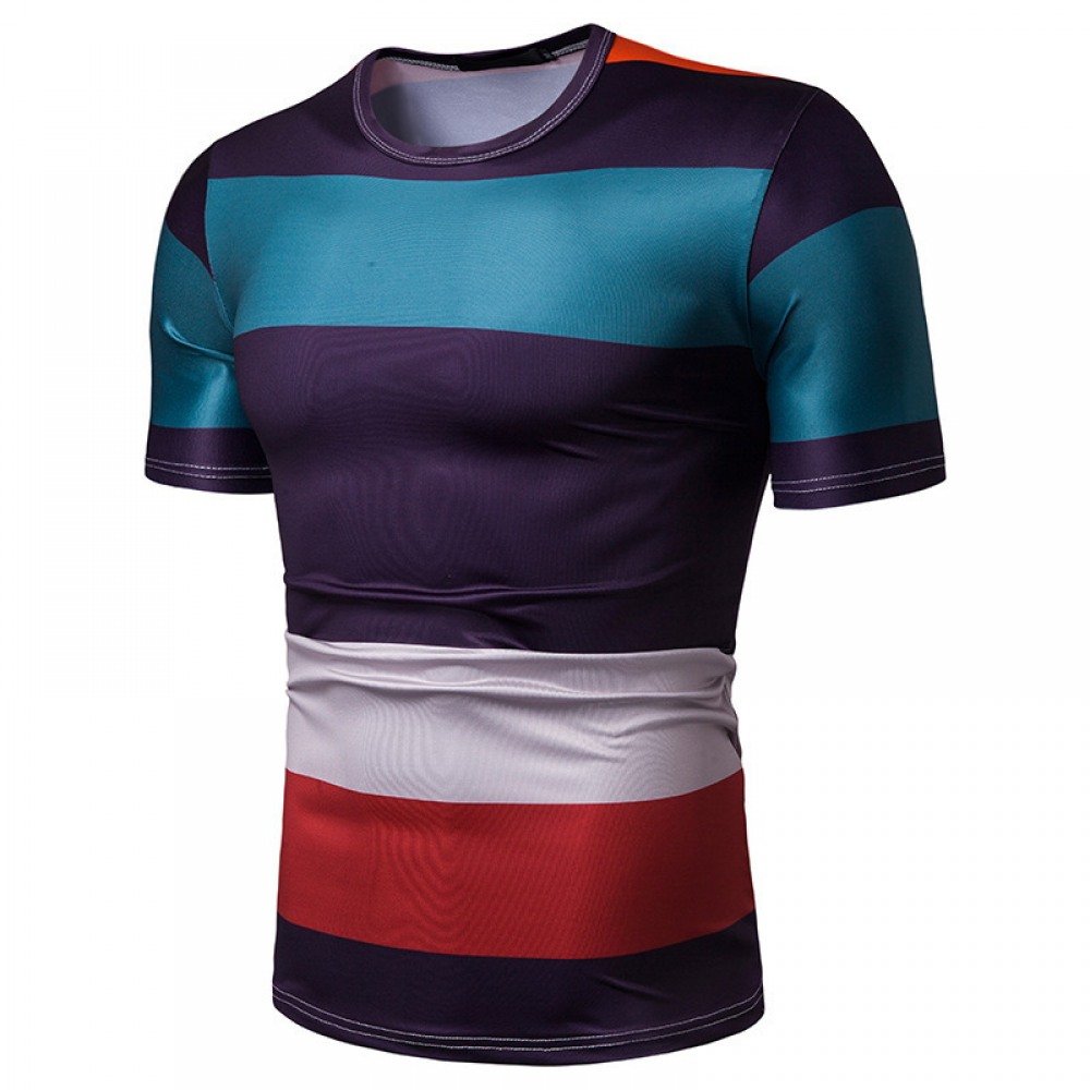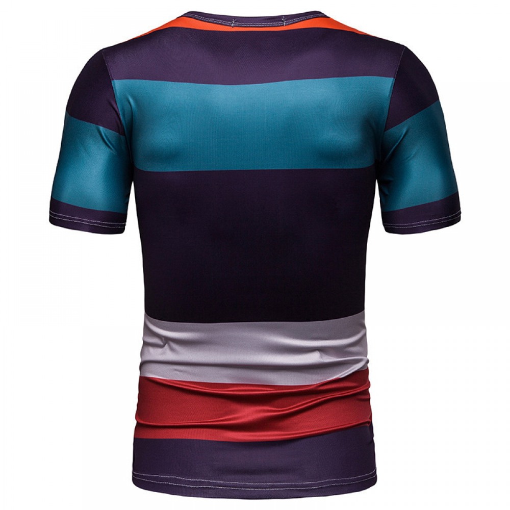 New Summer Men's Short-Sleeved T-Shirt Mens Contrast Striped Slim Casual T-Shirt